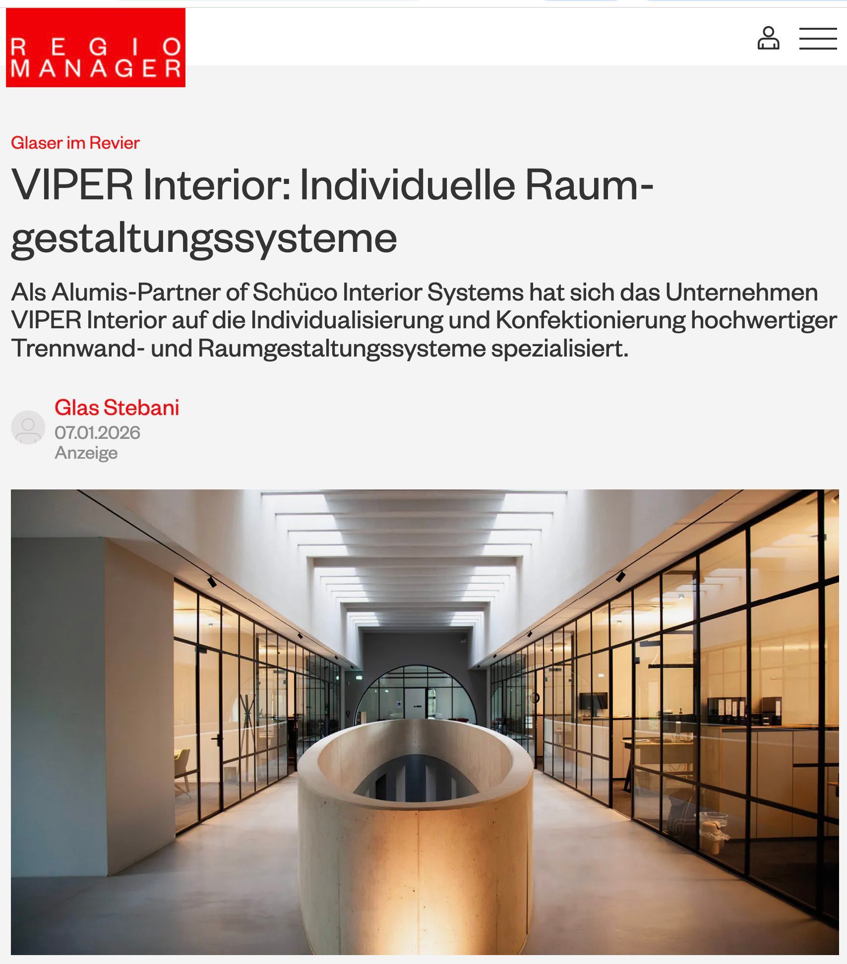 Im Revier Manager 2024/01 ist ein doppelseitiges Porträt erschienen, indem nicht nur VIPER Interior, sondern auch der Partner Glas Stebani vorgestellt werden.